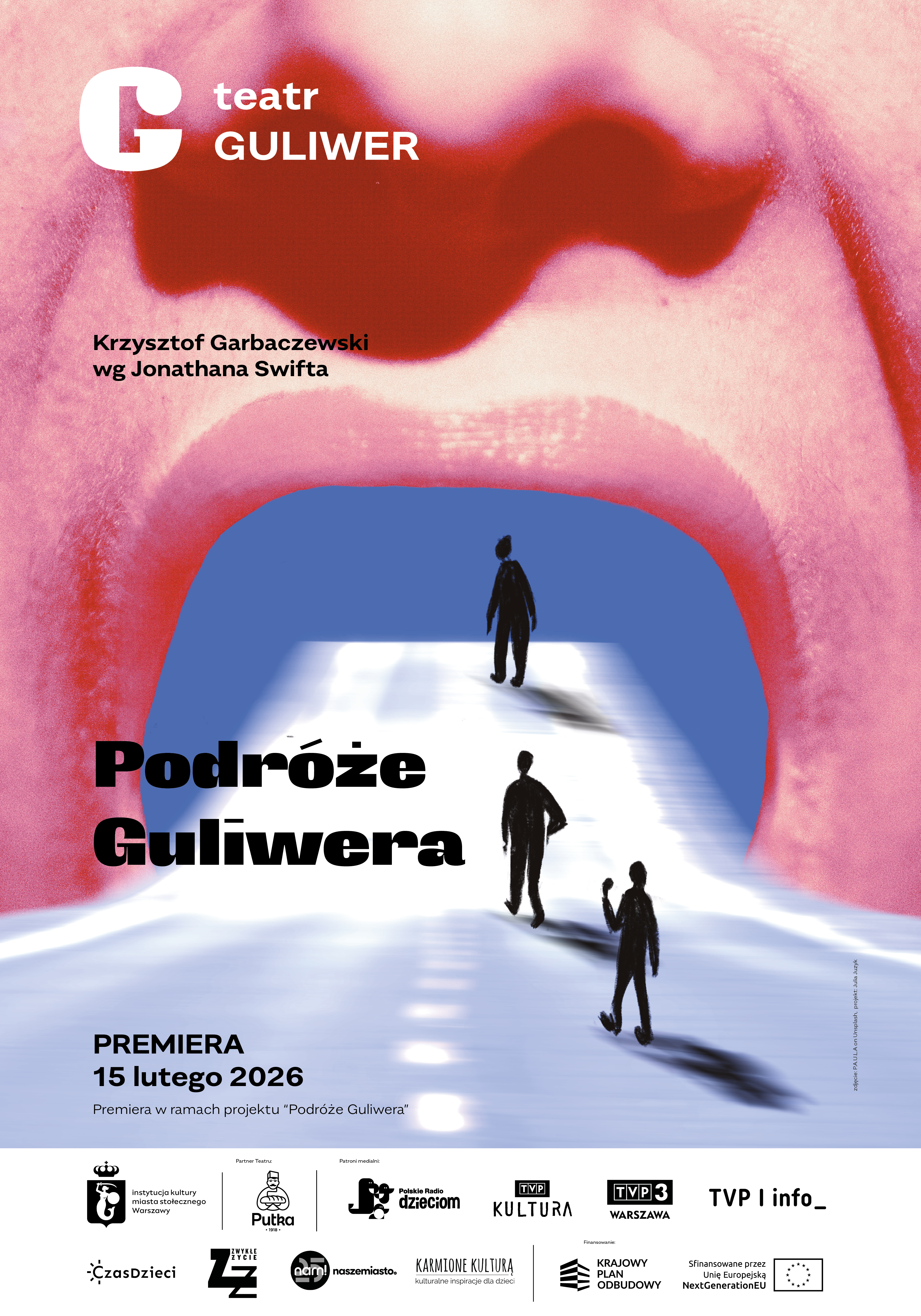 Słynna powieść zostaje zaadaptowana jako inscenizacja, łączącą klasyczną formę teatru lalek z elementami rzeczywistości wirtualnej. Twórcy i twórczynie spektaklu zaproszą na współczesną wersję „Podróży Guliwera”, która inspiruje się klasyką literatury, ale jednocześnie wykorzystuje nowe technologie. Na scenie pojawią się lalki stworzone przez Aleksandrę Wasilkowską, ale także animowane awatary. Podczas pokazów popremierowych, od 17 lutego, publiczność będzie miała także okazję odwiedzić specjalnie zaprojektowaną przestrzeń multimedialną.