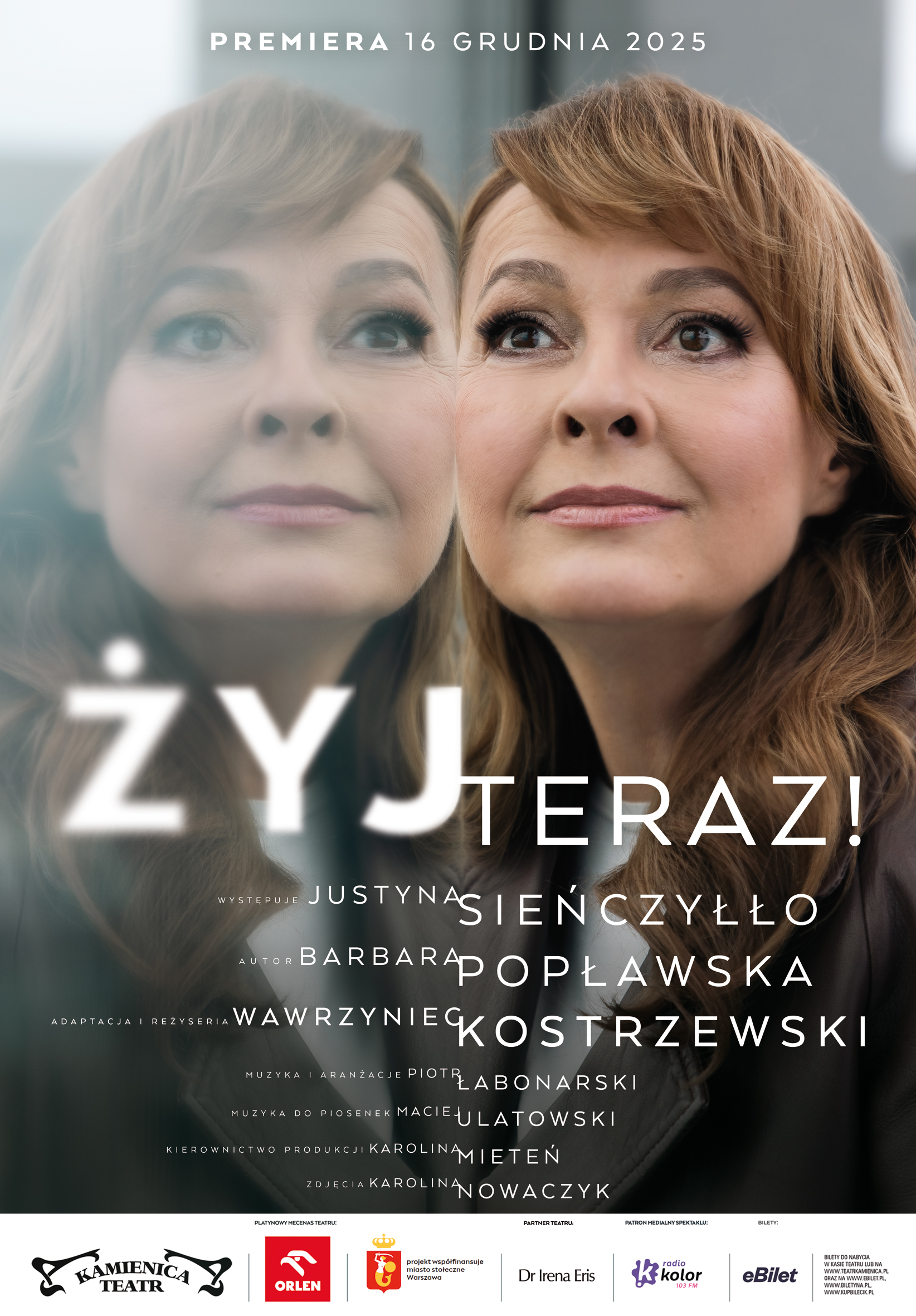 Na Scenie Emiliana Teatru Kamienica w Warszawie 16 grudnia odbędzie się premiera monodramu „Żyj teraz” w wykonaniu dyrektor naczelnej i artystycznej tego teatru Justyny Sieńczyłło - poinformowała PAP szefowa działu promocji Teatru Kamienica Olga Rawska.