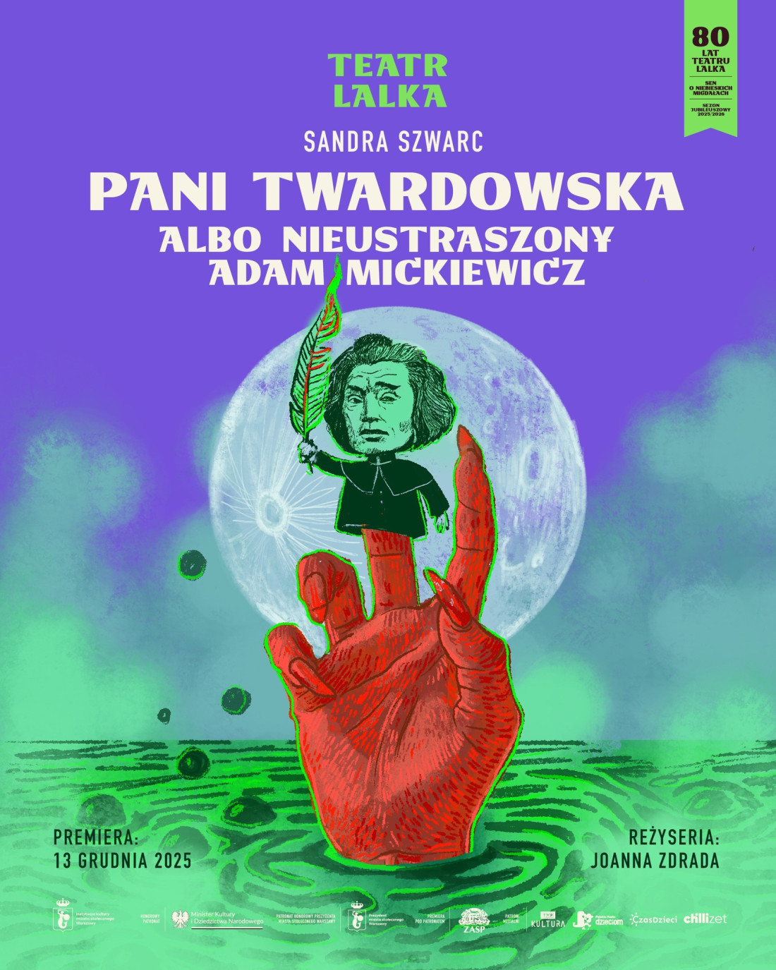 W Teatrze Lalka w Warszawie w sobotę odbędzie się premiera spektaklu „Pani Twardowska albo Nieustraszony Adam Mickiewicz” autorstwa Sandry Szwarc w reżyserii Joanny Zdrady. Towarzyszyć będzie uroczystym obchodom jubileuszu 80-lecia teatru.