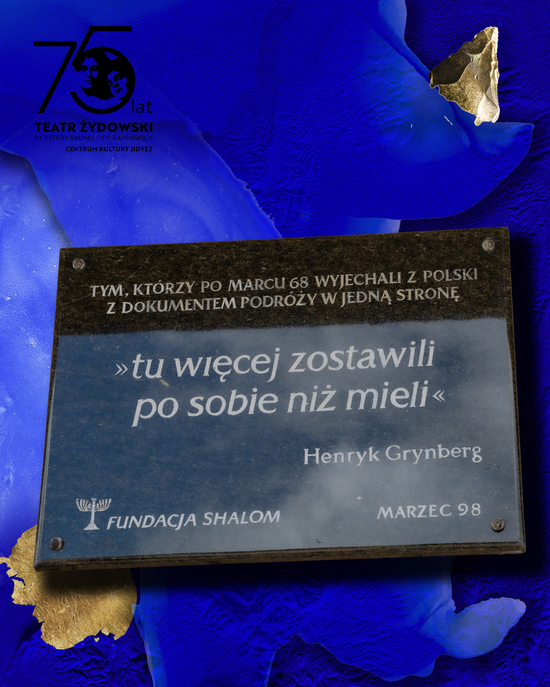 Jak co roku Gołda Tencer, Fundacja Shalom oraz Teatr Żydowski im. Estery Rachel i Idy Kamińskich – Centrum Kultury Jidysz zapraszają do wspólnego upamiętnienia wydarzeń Marca ’68 – jednego z najbardziej bolesnych rozdziałów powojennej historii Polski.