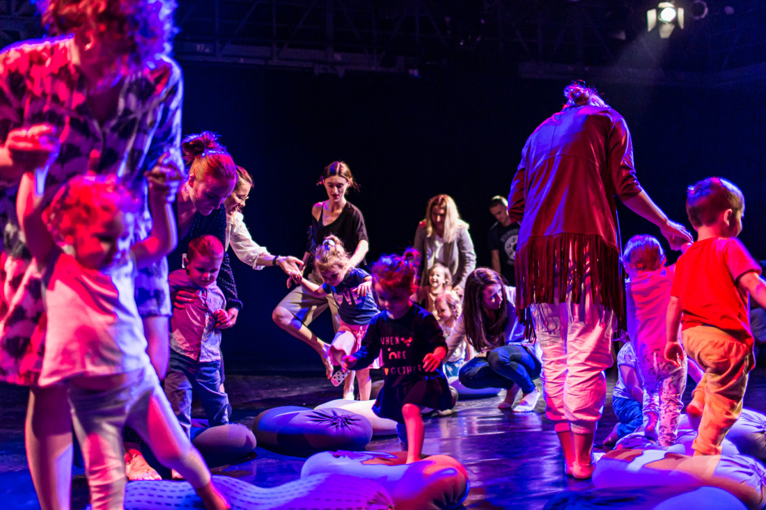 (…): tancerki i performerki Agnieszka Dubilewicz (…), Aniela Kokosza i Paulina Giwer-Kowalewska z Kolekttacza przez blisko godzinę goniły za nową energią, wyzwalając ją jednocześnie w małych ciekawskich, prowokowały ich (w wyznaczonych momentach) do współdziałania, czekały na reakcje na często dość dynamiczne zmiany.