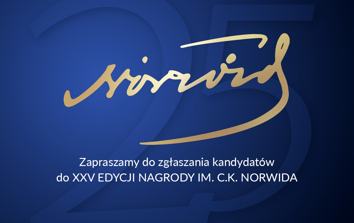 Trwa nabór wniosków do jubileuszowej edycji Nagrody Samorządu Województwa Mazowieckiego im. Cypriana Kamila Norwida za wybitne dzieło lub kreację artystyczną powstałe w 2025 r. Zgłoś swojego faworyta lub faworytkę! Termin składania wniosków upływa 27 kwietnia br.