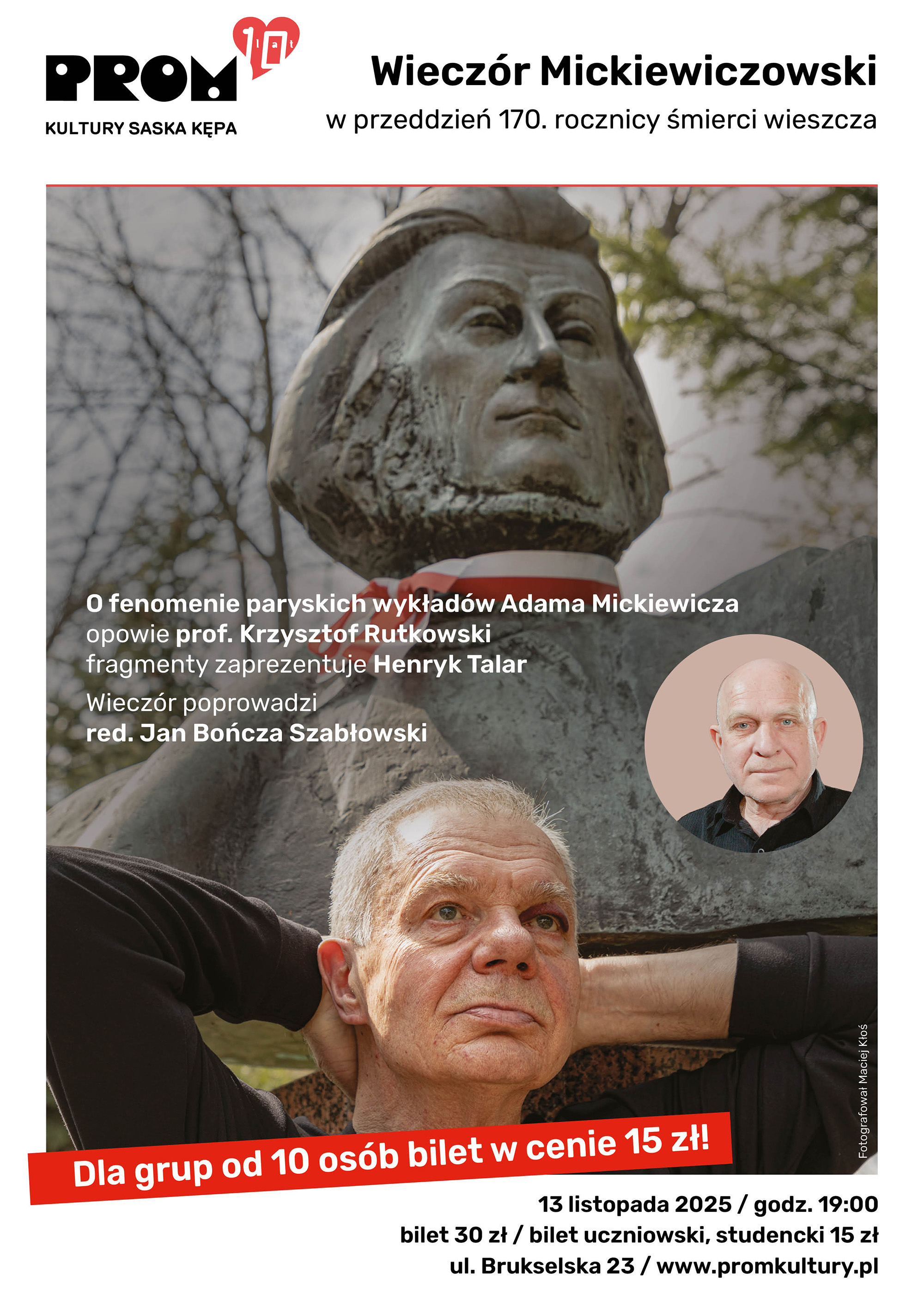 W czwartek 13 listopada o 19.00, w przeddzień 170. rocznicy śmierci Adama Mickiewicza, w Promie Kultury Saska Kępa odbędze się Wieczór Mickiewiczowski.