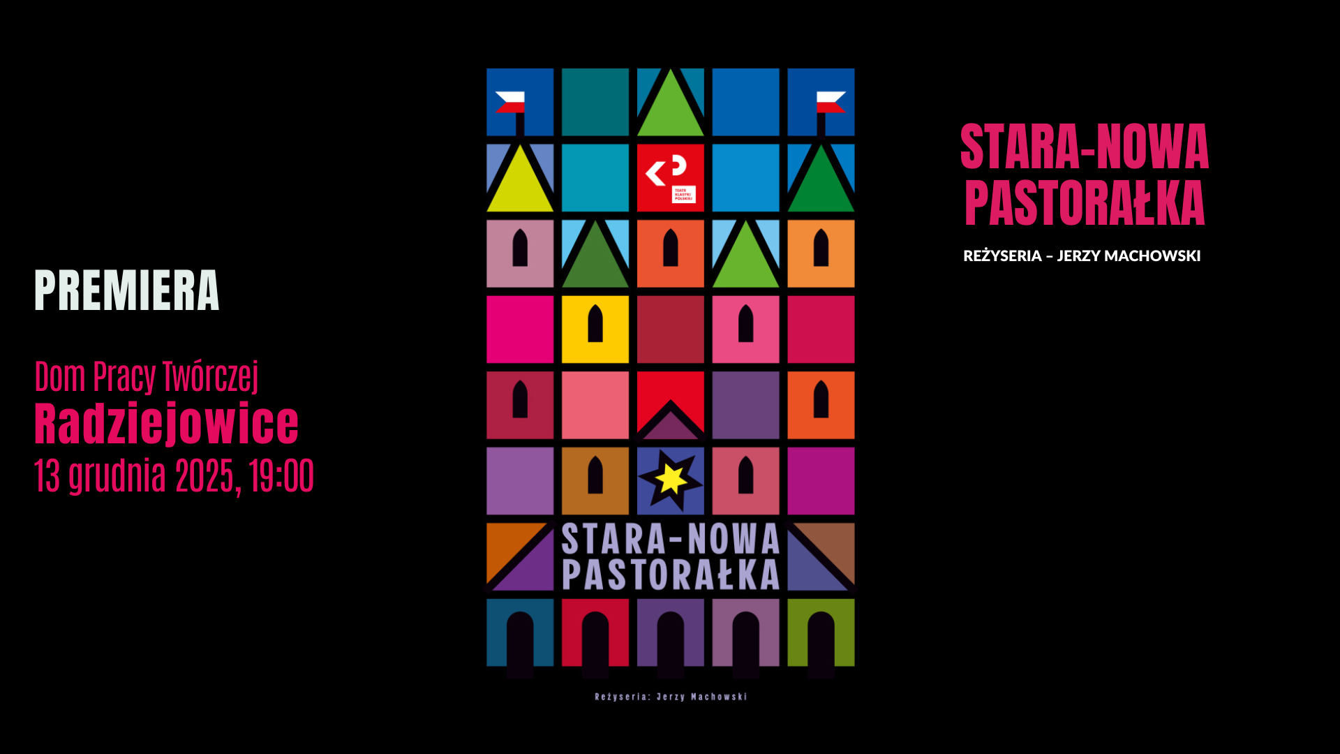 13 grudnia o godz. 19.00 w Domu Pracy Twórczej w Radziejowicach odbędzie się premiera spektaklu „STARA-NOWA PASTORAŁKA” według anonimowych misteriów staropolskich i kolęd oraz „Pastorałki” Schillera w reż. Jerzego Machowskiego.
