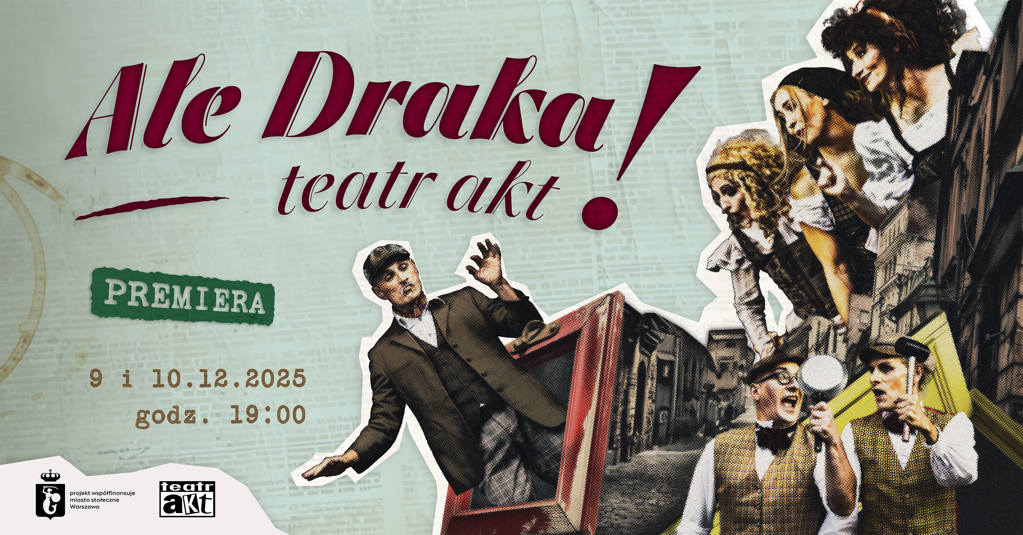 9 i 10 grudnia 2025 roku o godzinie 19.00 Teatr Akt zaprezentuje premierowy spektakl „Ale draka!” w siedzibie teatru przy ul. Łaziebnej 9.