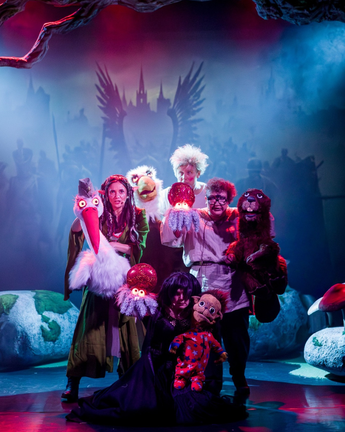Na szczególne uznanie zasługuje praca zespołu aktorskiego, który nie tylko sprawnie animuje lalki, lecz równolegle prowadzi role aktorskie i wokalne. Wielość postaci, szybkie zmiany konwencji, kostiumów i rekwizytów wymagają ogromnej dyscypliny i precyzji – i właśnie ta precyzja robi największe wrażenie. Wszystko dzieje się bez zacięć, „bez obciachu”, z wyczuwalną radością grania.