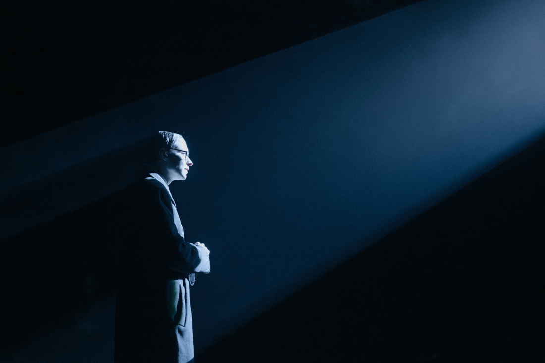 Minimalistyczny charakter tekstu sprawia, że dynamika spektaklu w dużej mierze opiera się na środkach scenicznych – świetle, ruchu i dźwięku. W tak oszczędnej dramaturgii to właśnie one przejmują część funkcji narracyjnych i odpowiadają za budowanie napięcia. Problem pojawia się jednak wtedy, gdy ich natężenie zaczyna przesuwać punkt ciężkości przedstawienia. Zamiast wspierać główną oś dramaturgiczną, zaczynają w niej dominować, kierując uwagę widza przede wszystkim ku formie. Ten problem uwydatnia się w warstwie muzycznej. Kompozycje Nikodema Dybińskiego są wyraziste i krok po kroku budują napięcie sceniczne, jednak ich nadmiar sprawia, że funkcjonują jak osobna linia dramaturgiczna.