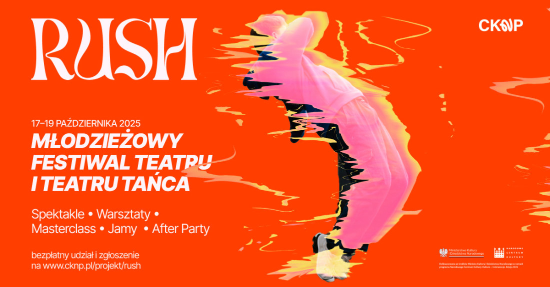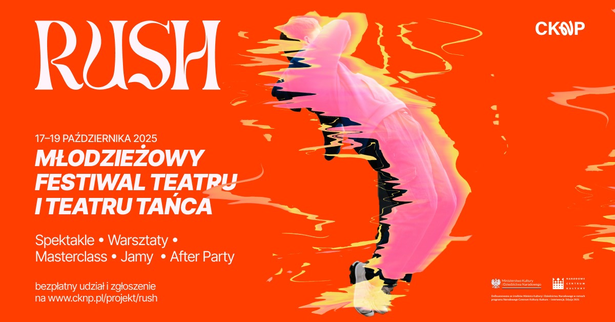 Termin zgłoszeń: do 30 września 2025 r. Formularz, regulamin oraz szczegółowe informacje dostępne są na stronie https://cknp.pl/wydarzenie/rush-mlodziezowy-festiwal-teatru-i-teatru-tanca/