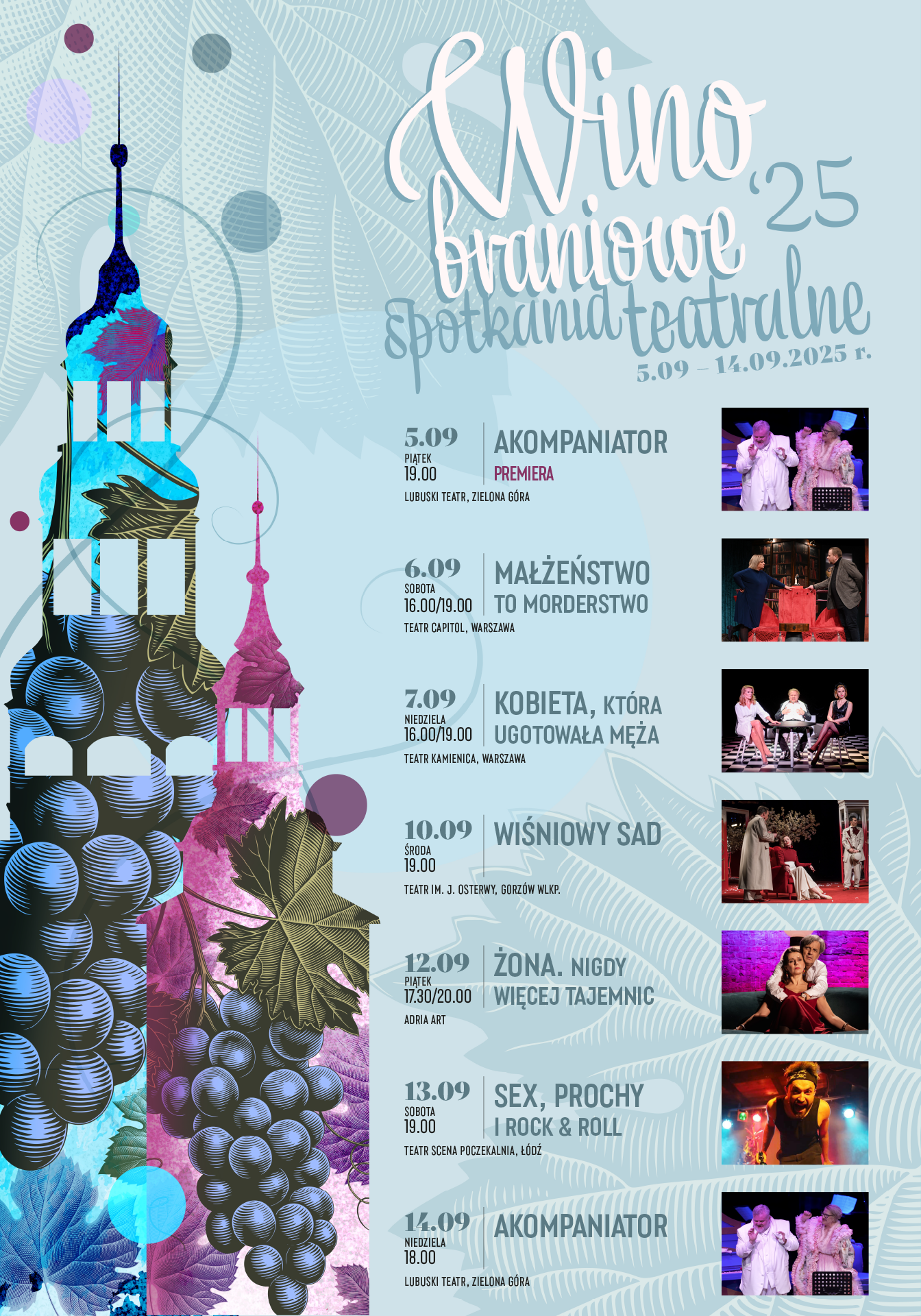 W ramach Winobraniowych Spotkań Teatralnych w Lubuskim Teatrze przewidziano spektakle Teatru Capitol, Teatru Kamienica, Teatru im. Juliusza Osterwy oraz Lubuskiego Teatru.