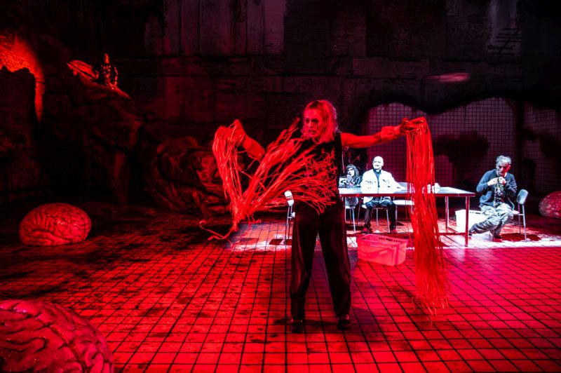 W tym inicjalnym fragmencie przedstawienia jego naczelną postacią może wydawać się ta, którą kreuje Jan Kochanowski. Upiorny dyrygent, trochę Ozzy Osbourne, trochę Hans Christian Andersen sfilmowany przez George’a A. Romero, zarządza tłumem zebranych na scenie postaci – masą w czarno-szarych strojach metalowców, z wymalowanymi groteskowo twarzami. Po odśpiewaniu wymuszonego przez wodzireja chorału tłum rozbija się na dwie części: pięć postaci zajmuje miejsce przy instrumentach w głębi sceny, reszta pozostaje na pierwszym planie.